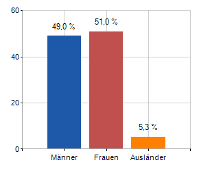 und entsprechende Bevölkerungsdichte, Geschlechterverteilung der Bevölkerung und Anzahl der dort ansässigen Familien, Durchschnittsalter und Ausländeranteil
