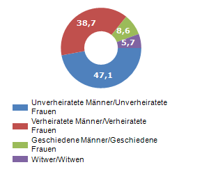 Ansässige Familien und entsprechende EntwicklungDurchschnittliche Anzahl der Haushaltsmitglieder und entsprechende Entwicklung, Familienstand: unverheiratete, verheiratete, geschiedene Männer/Frauen, Witwen/Witwer in