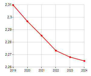 Ansässige Familien und entsprechende EntwicklungDurchschnittliche Anzahl der Haushaltsmitglieder und entsprechende Entwicklung, Familienstand: unverheiratete, verheiratete, geschiedene Männer/Frauen, Witwen/Witwer in