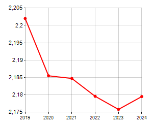 Ansässige Familien und entsprechende EntwicklungDurchschnittliche Anzahl der Haushaltsmitglieder und entsprechende Entwicklung, Familienstand: unverheiratete, verheiratete, geschiedene Männer/Frauen, Witwen/Witwer in