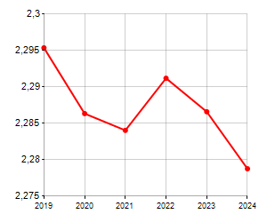 Ansässige Familien und entsprechende EntwicklungDurchschnittliche Anzahl der Haushaltsmitglieder und entsprechende Entwicklung, Familienstand: unverheiratete, verheiratete, geschiedene Männer/Frauen, Witwen/Witwer in