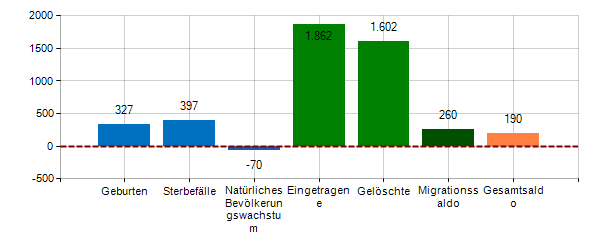 Gesamtsaldo = natürliches Bevölkerungswachstum + Migrationssaldo