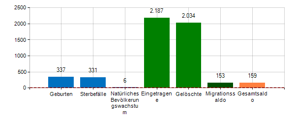 Gesamtsaldo = natürliches Bevölkerungswachstum + Migrationssaldo