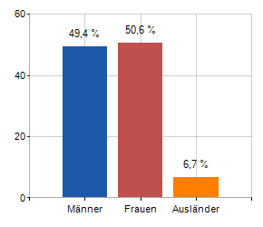 und entsprechende Bevölkerungsdichte, Geschlechterverteilung der Bevölkerung und Anzahl der dort ansässigen Familien, Durchschnittsalter und Ausländeranteil