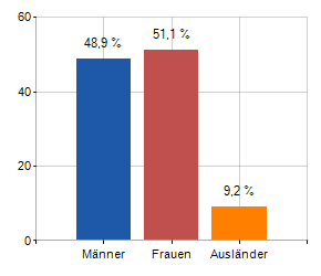 und entsprechende Bevölkerungsdichte, Geschlechterverteilung der Bevölkerung und Anzahl der dort ansässigen Familien, Durchschnittsalter und Ausländeranteil