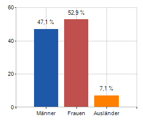 und entsprechende Bevölkerungsdichte, Geschlechterverteilung der Bevölkerung und Anzahl der dort ansässigen Familien, Durchschnittsalter und Ausländeranteil