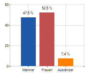 und entsprechende Bevölkerungsdichte, Geschlechterverteilung der Bevölkerung und Anzahl der dort ansässigen Familien, Durchschnittsalter und Ausländeranteil