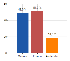 und entsprechende Bevölkerungsdichte, Geschlechterverteilung der Bevölkerung und Anzahl der dort ansässigen Familien, Durchschnittsalter und Ausländeranteil