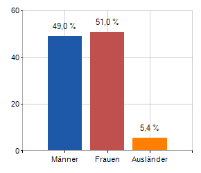 und entsprechende Bevölkerungsdichte, Geschlechterverteilung der Bevölkerung und Anzahl der dort ansässigen Familien, Durchschnittsalter und Ausländeranteil