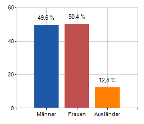 und entsprechende Bevölkerungsdichte, Geschlechterverteilung der Bevölkerung und Anzahl der dort ansässigen Familien, Durchschnittsalter und Ausländeranteil