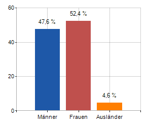und entsprechende Bevölkerungsdichte, Geschlechterverteilung der Bevölkerung und Anzahl der dort ansässigen Familien, Durchschnittsalter und Ausländeranteil