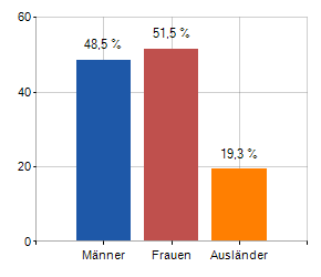 und entsprechende Bevölkerungsdichte, Geschlechterverteilung der Bevölkerung und Anzahl der dort ansässigen Familien, Durchschnittsalter und Ausländeranteil