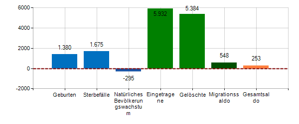 Gesamtsaldo = natürliches Bevölkerungswachstum + Migrationssaldo