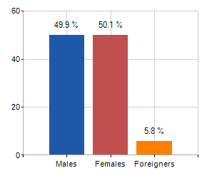 and related population density, population per gender and number of households, average age and incidence of foreigners