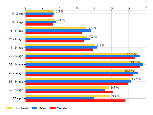 Age classes per gender and related impact, average age and old-age index in