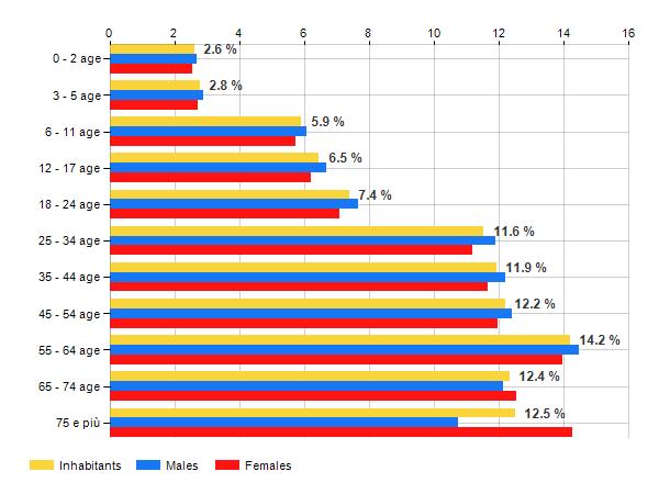 Age classes per gender and related impact, average age and old-age index in
