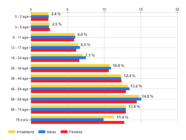 Age classes per gender and related impact, average age and old-age index in