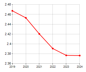 Resident families and related trend, the average number of members of the family and its related trend, civil status: bachleors/Bachelorette, married, divorced and widows / widowers in