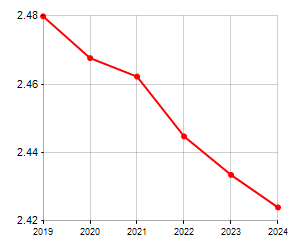 Resident families and related trend, the average number of members of the family and its related trend, civil status: bachleors/Bachelorette, married, divorced and widows / widowers in