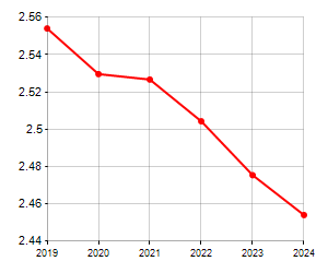 Resident families and related trend, the average number of members of the family and its related trend, civil status: bachleors/Bachelorette, married, divorced and widows / widowers in