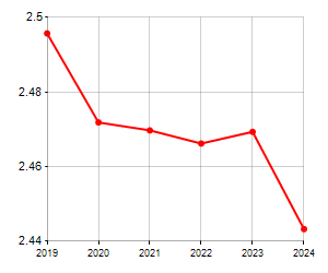 Resident families and related trend, the average number of members of the family and its related trend, civil status: bachleors/Bachelorette, married, divorced and widows / widowers in