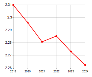 Resident families and related trend, the average number of members of the family and its related trend, civil status: bachleors/Bachelorette, married, divorced and widows / widowers in