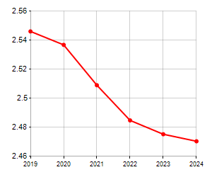 Resident families and related trend, the average number of members of the family and its related trend, civil status: bachleors/Bachelorette, married, divorced and widows / widowers in