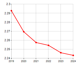 Resident families and related trend, the average number of members of the family and its related trend, civil status: bachleors/Bachelorette, married, divorced and widows / widowers in