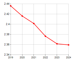 Resident families and related trend, the average number of members of the family and its related trend, civil status: bachleors/Bachelorette, married, divorced and widows / widowers in