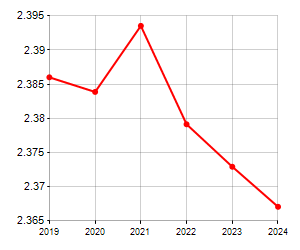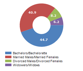 Resident families and related trend, the average number of members of the family and its related trend, civil status: bachleors/Bachelorette, married, divorced and widows / widowers in