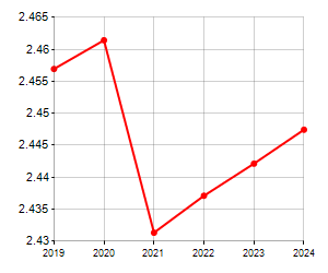 Resident families and related trend, the average number of members of the family and its related trend, civil status: bachleors/Bachelorette, married, divorced and widows / widowers in