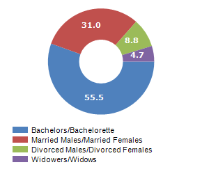 Resident families and related trend, the average number of members of the family and its related trend, civil status: bachleors/Bachelorette, married, divorced and widows / widowers in