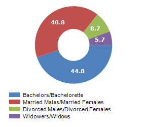 Resident families and related trend, the average number of members of the family and its related trend, civil status: bachleors/Bachelorette, married, divorced and widows / widowers in