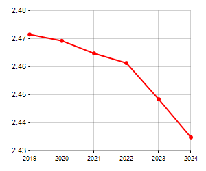 Resident families and related trend, the average number of members of the family and its related trend, civil status: bachleors/Bachelorette, married, divorced and widows / widowers in