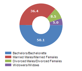 Resident families and related trend, the average number of members of the family and its related trend, civil status: bachleors/Bachelorette, married, divorced and widows / widowers in
