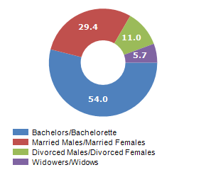 Resident families and related trend, the average number of members of the family and its related trend, civil status: bachleors/Bachelorette, married, divorced and widows / widowers in