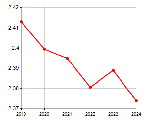 is on 183° place among 565 municipalities for average number of components of the family