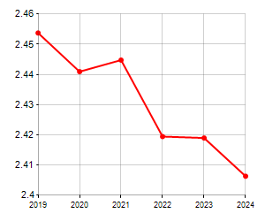 Resident families and related trend, the average number of members of the family and its related trend, civil status: bachleors/Bachelorette, married, divorced and widows / widowers in