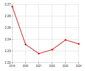 Resident families and related trend, the average number of members of the family and its related trend, civil status: bachleors/Bachelorette, married, divorced and widows / widowers in