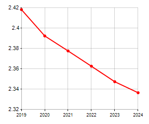 Resident families and related trend, the average number of members of the family and its related trend, civil status: bachleors/Bachelorette, married, divorced and widows / widowers in