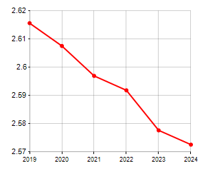 Resident families and related trend, the average number of members of the family and its related trend, civil status: bachleors/Bachelorette, married, divorced and widows / widowers in