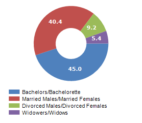 Resident families and related trend, the average number of members of the family and its related trend, civil status: bachleors/Bachelorette, married, divorced and widows / widowers in