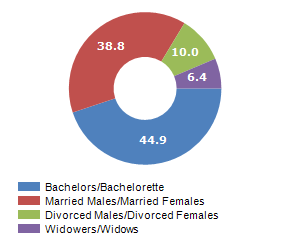 Resident families and related trend, the average number of members of the family and its related trend, civil status: bachleors/Bachelorette, married, divorced and widows / widowers in