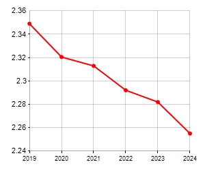 Resident families and related trend, the average number of members of the family and its related trend, civil status: bachleors/Bachelorette, married, divorced and widows / widowers in