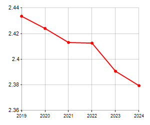 Resident families and related trend, the average number of members of the family and its related trend, civil status: bachleors/Bachelorette, married, divorced and widows / widowers in