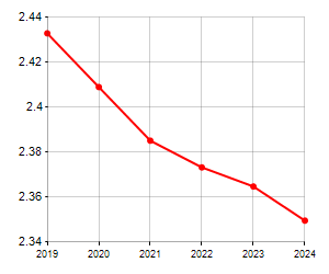 Resident families and related trend, the average number of members of the family and its related trend, civil status: bachleors/Bachelorette, married, divorced and widows / widowers in