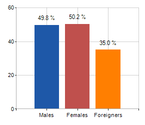 Males, females and foreigners incidence