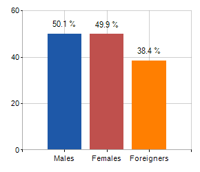 Males, females and foreigners incidence