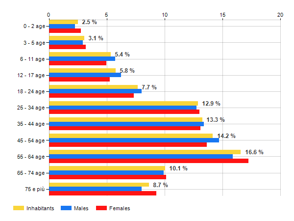 Age classes per gender and related impact, average age and old-age index in