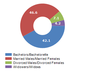 Resident families and related trend, the average number of members of the family and its related trend, civil status: bachleors/Bachelorette, married, divorced and widows / widowers in